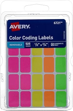 ChromaLabel 0.75 Inch Permanent Color Code Dot Labels on Sheets, 5 Assorted Colors, 1200 Stickers per Variety Pack, Standard