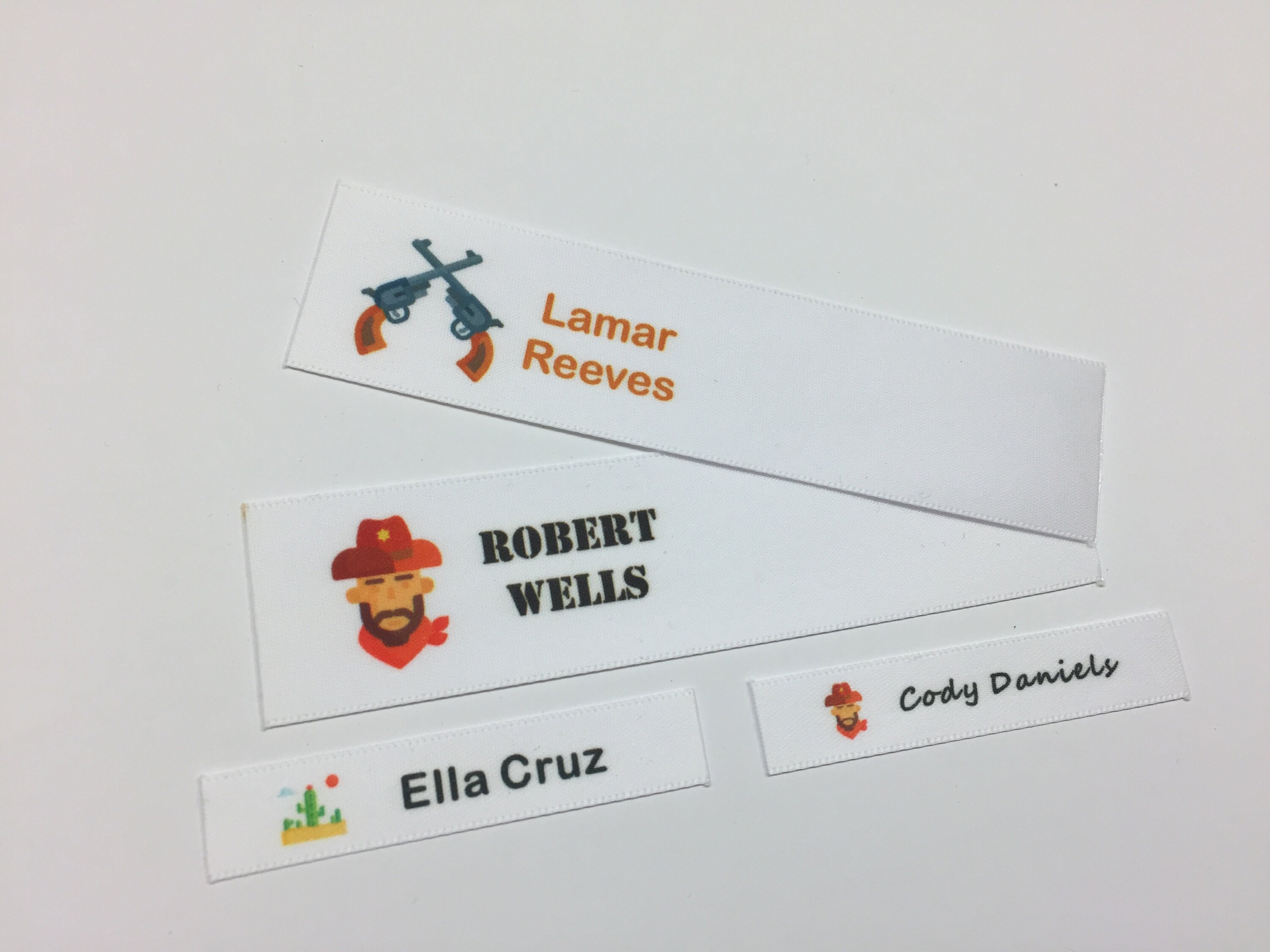 Personalised Name Labels | Kids Name Tags | Name It Labels Sew In Labels. We get that some parents and even schools prefer a more traditional sew on name tape. We have teamed with another UK based company to offer you a choice of woven name labels. Personalised Bags. From books bags to gym bags, school messenger bags to weekend bags, we have something that will please all ages. Personalised Gifts Homepage • Nametags4u Iron-on name tags are also very popular for clothing, and in care homes Sew-on labels and the Easyfix Clip-on labels are still a favourite. Labels can be printed with or without pictures. And you can even upload your own photos! This is perfect for younger children who can't yet read to help them identify their belongings. Woven Labels UK You can find all of our identification labels in our "school labels" pages. Among some of the products you will find our woven sew on nametapes, the finest quality woven name tapes that are the traditional way of labelling children’s school clothing. We pride ourselves on an efficient service with many products available for 24-hour despatch.